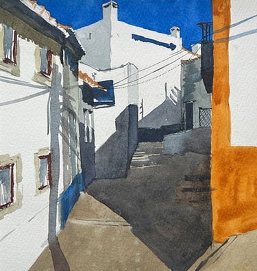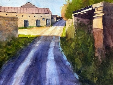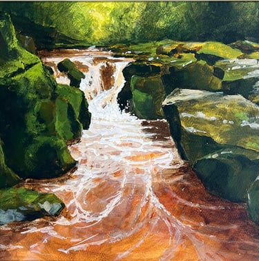 All my professional life has been, and still is, within the commercial creative environment, so returning to painting is a step away from those confines. My passion is for the natural landscapes around us, with a desire to capture a moment of light, dark, warmth or chill within that scene. As a studio painter I work mainly from my many reference photographs. I do strive to paint or sketch Plein Air when and where I can. I find when I do, I work much quicker, creating a looser style work with energy and vigour, something I want to develop further. Working predominantly in watercolours, I am becoming more familiar with acrylics and the nuances of the medium for capturing my intent.