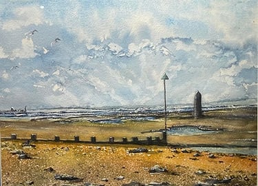 I trained as a geography teacher and developed a deep love of the English landscape. Field sketching was integral, often carried out in dreadful conditions. I completed an art course 30 years ago in drawing, watercolour, and oils. Unfortunately, promotion in my job meant there was little time to draw or paint. On retirement, I picked up a pencil and paintbrush and went out to capture the evocative Yorkshire landscape and changing coastline of Essex. I recently entered my watercolour paintings in a regional open art competition. I was thrilled to be successful in the Essex and Calderdale exhibitions last year.