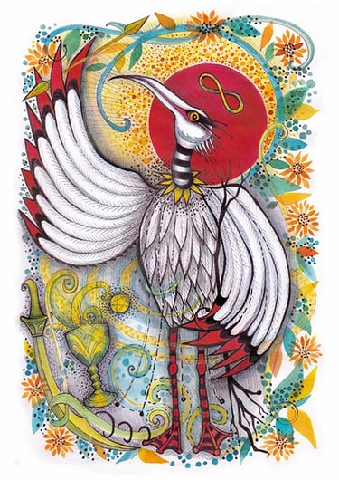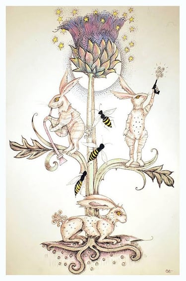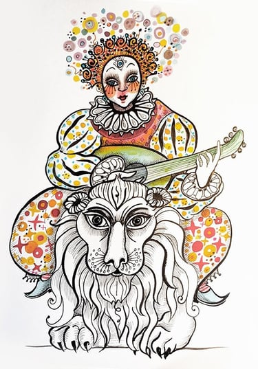 I’m an illustrator and textile artist. I love folklore and telling stories with ink and stitch. Both my illustrations and my embroidered textiles contain a menagerie of magical creatures. I often respond to literary and heritage themes and have completed a number of residencies and commissions for museums. Beyond my studio work, I create large-scale costumes, puppets and lanterns for festivals and parades.