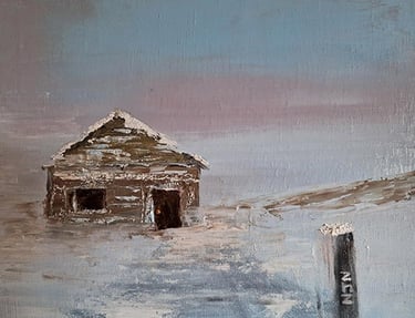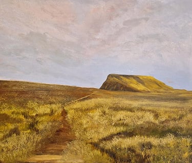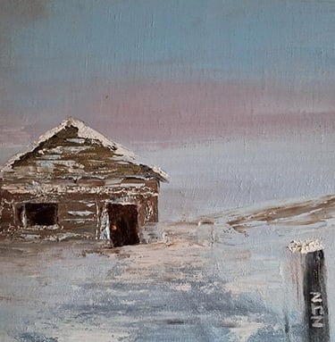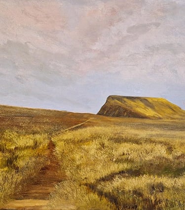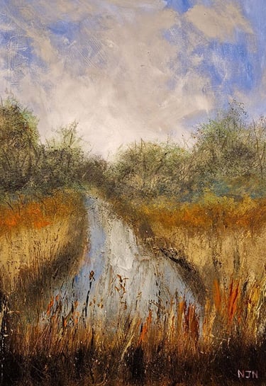 Neil works in oil and acrylics, sometimes combining the two. Many of his paintings are inspired by hikes in the Yorkshire Dales, The Lake District and North Yorkshire Moors. Neil says, “I love a landscape. When out hiking, I’m always wondering what the world looks like from that hill, or from that outcrop, or what do those trees look like up close. With my paintings I try to summon that sense of contemplation, that sense of loneliness and isolation.