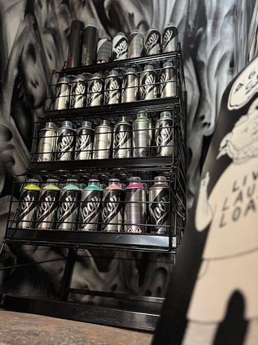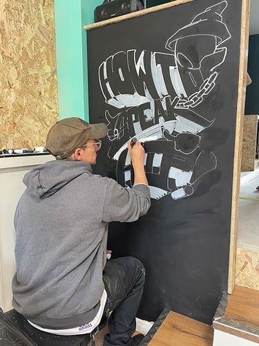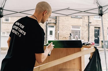 Onist is a Bradford based graffiti and mural artist who played a pivotal role in the development of the Fountain Street Arts Project space. He is a known figure in the local DIY skate scene, particularly the historical BD1 skate volunteers. "I find myself fascinated by letter forms and imaginary characters, which I use to bring new life to lost spaces and everyday objects".