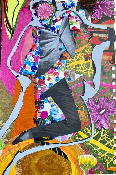 South Square Collage Club emerged from an online collage workshop during a socially restricted Covid period in May 2021 for World Collage Day. People all over the world joined in supported by remote hosts in South Square and Exeter. The local participants decided to continue in person once that was possible. Four years later there's a lively evolving group who gather monthly in South Square Centre on a Saturday morning. The participants include people who are new to making art and people who have spent their lives creating. There's usually a theme linked to our interests but following it is entirely optional. There's a big selection of resources and a huge welcome to all.