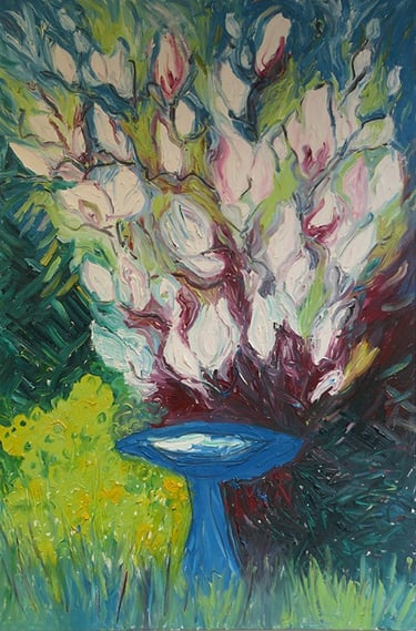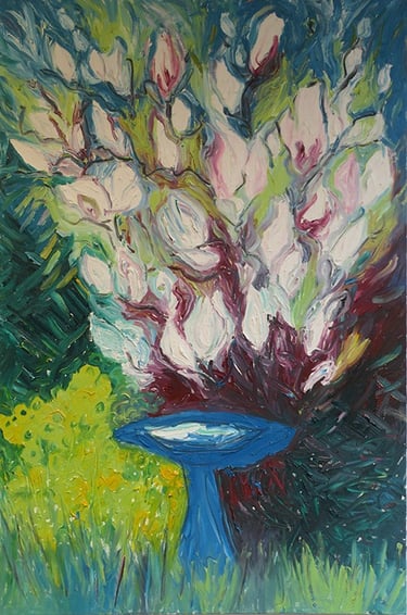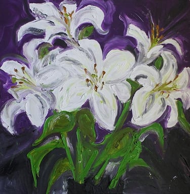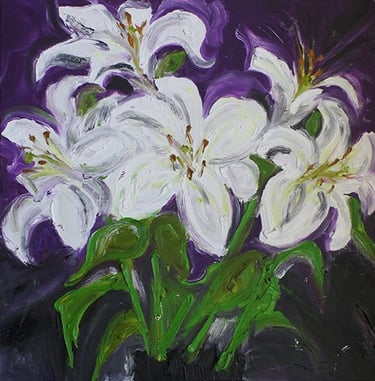 I am a self taught Bradford artist working in various different mediums. My first love is painting colourful oils on big canvasses but I also enjoy printing, collage, drawing, textiles, assemblages and photography. I am inspired by nature, especially flowers, but also love playing around with colour, movement and abstraction - it makes my head feel good!